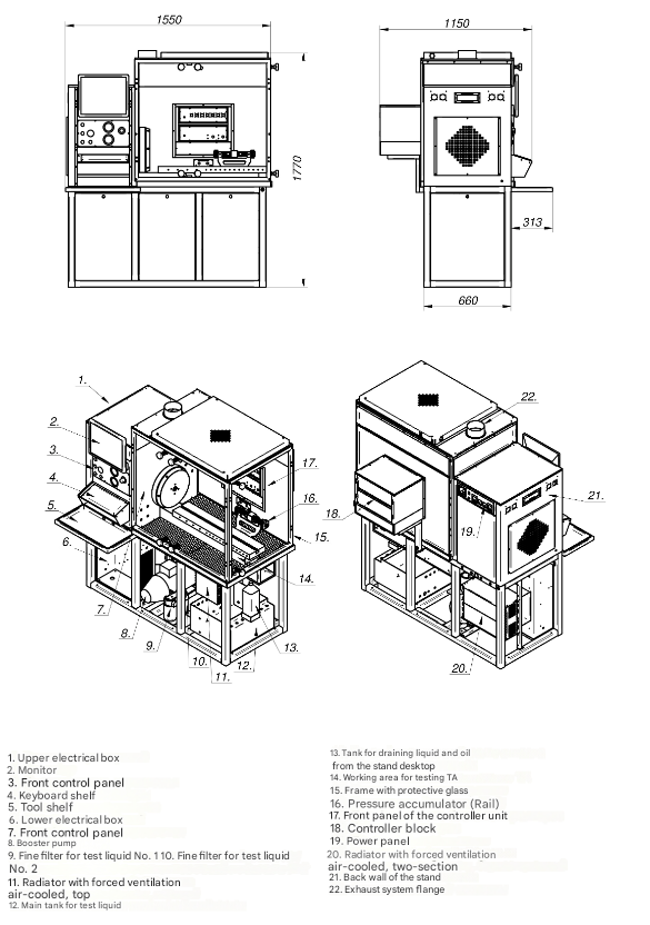 ** The purification unit is designed to filter liquid vapors generated in the working compartment of equipment for testing fuel equipment.