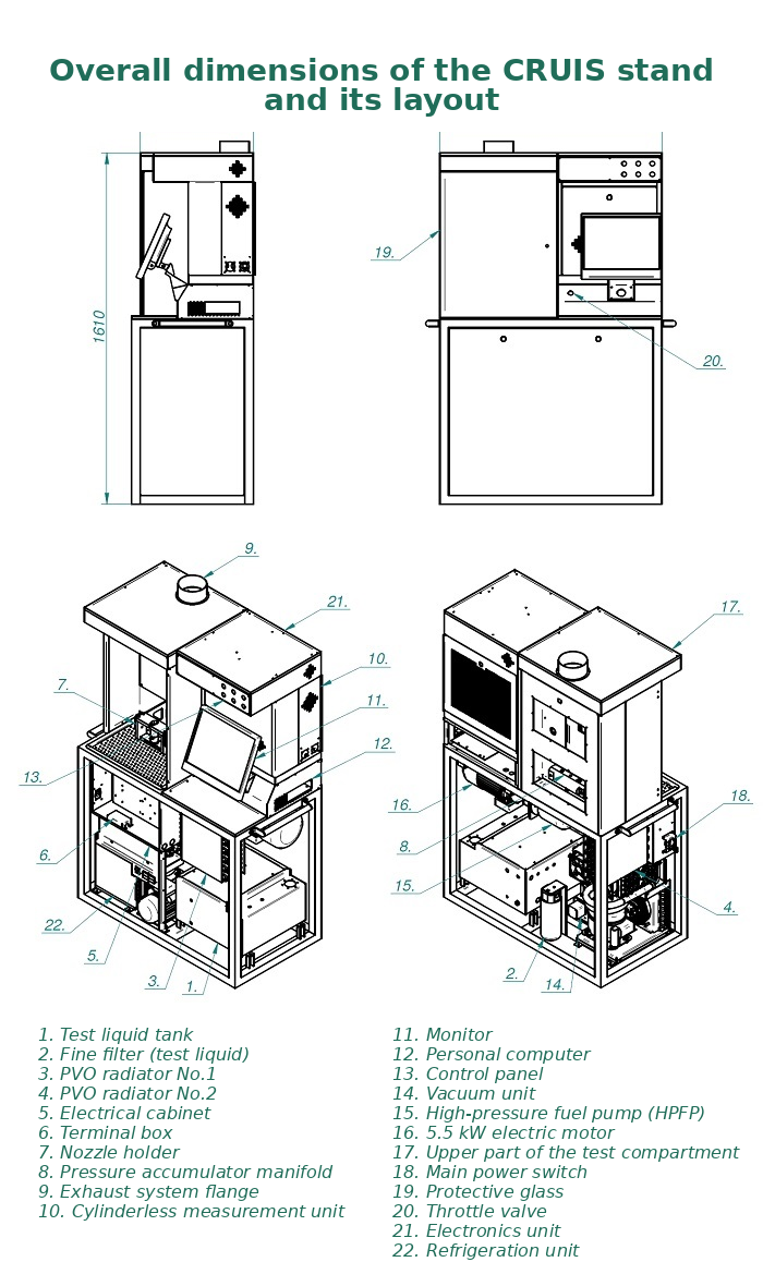 - The design of the CR test stand and the elements of its equipment meet the requirements of international standards in terms of static and dynamic parameters of ISO 4008/1 and ISO 4008/2.