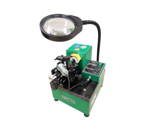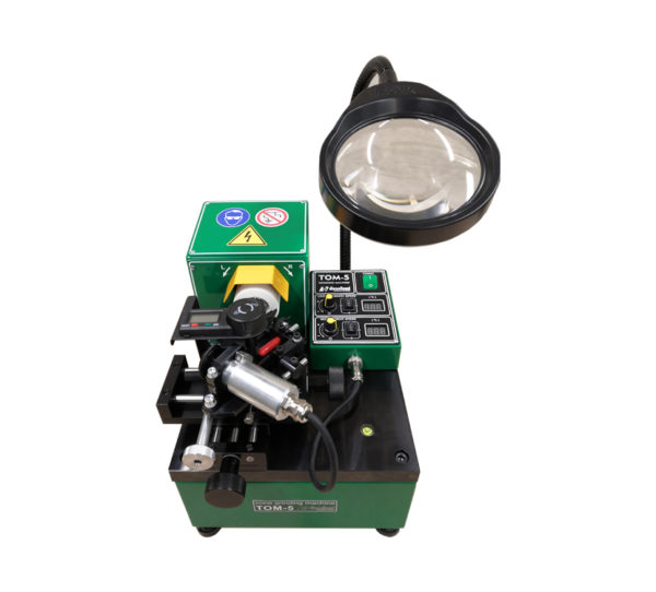 The TOM-5 machine is designed for sharpening laps and other bodies of rotation (drills, cutters, cores, etc.) with any range of angles by installing them in prism holders. The machine uses an abrasive (sharpening) stone in the form of a cup as its working tool.